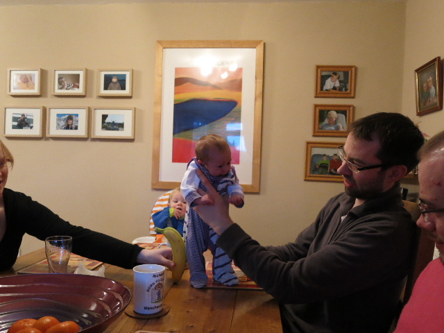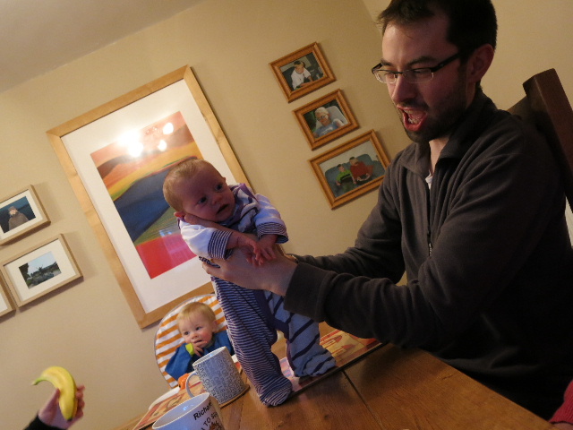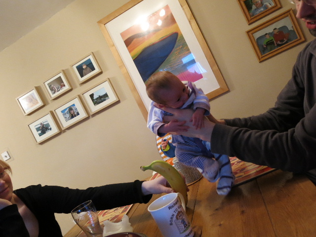 Yesterday Sarah, Damien, Daniel and Emma called for tea – you will see in a couple of the pictures (below) that a banana can be used as an effective measuring tool. I would estimate that Emma is about two and a half bananas tall.