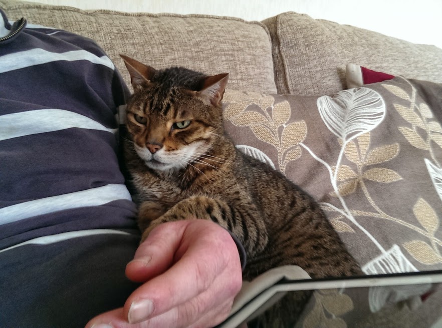 Jack the cat and I had been sitting comfortably and snoozing … then guess who turned up