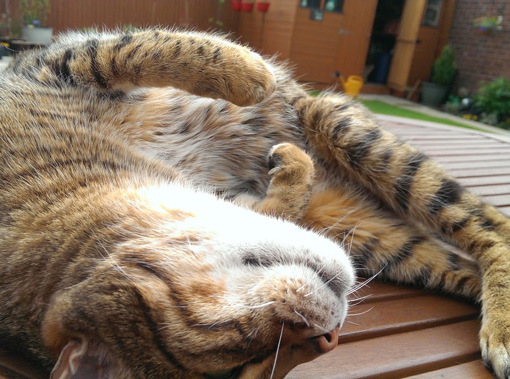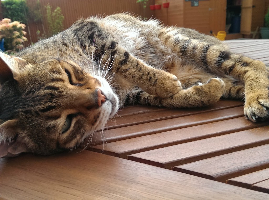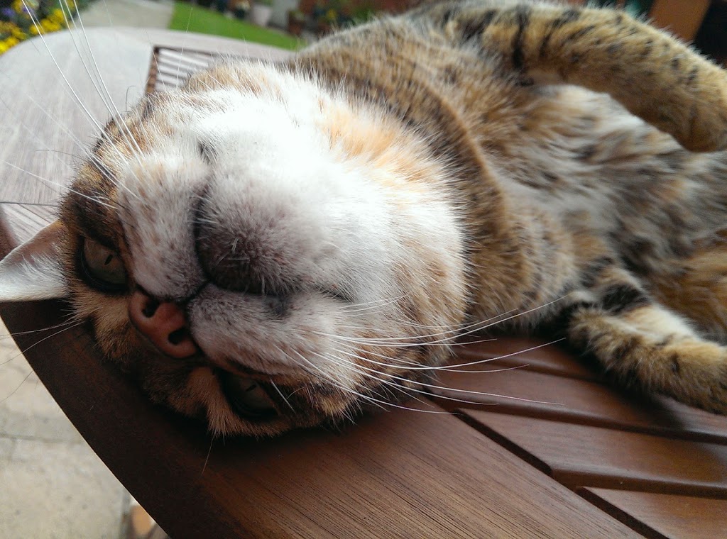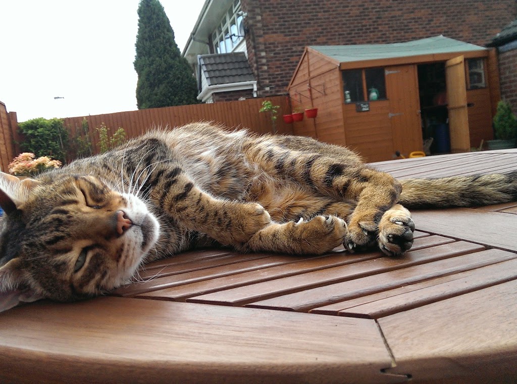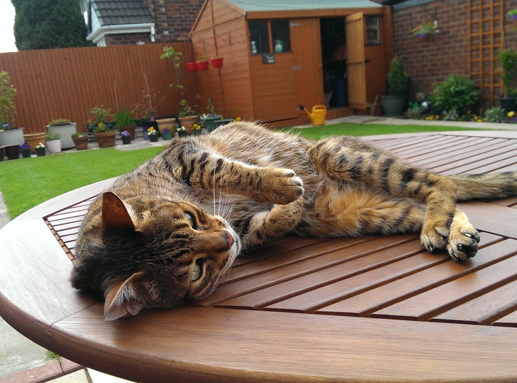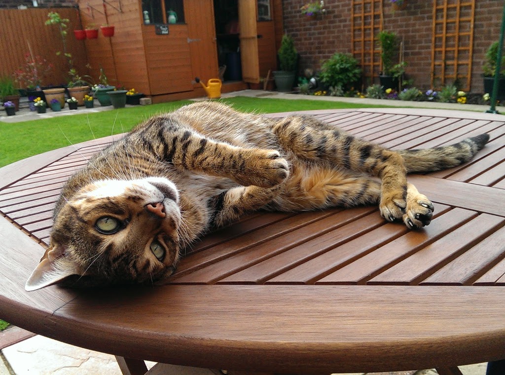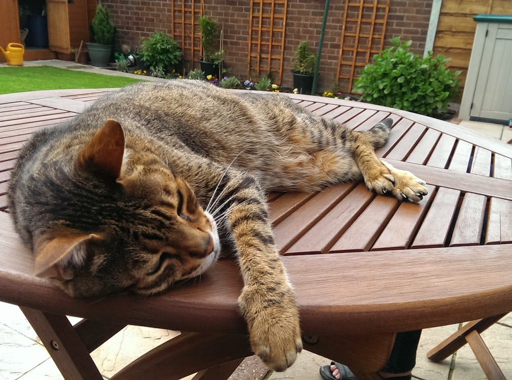 but I suppose that’s because he is one. Had quite a busy day today, Pat and I met Sarah and the children for a coffee this morning, then I came home cut the front grass, washed the car and then spent an hour in the back garden by which time I thought that was quite enough for the day. I sat down to enjoy the sunshine and Jack joined me at the table as you can see in the picture below