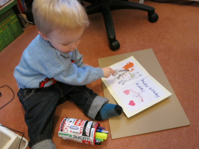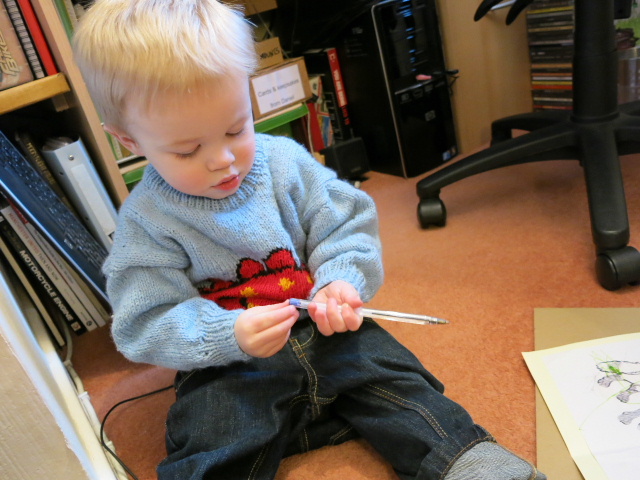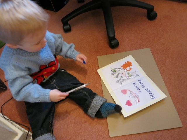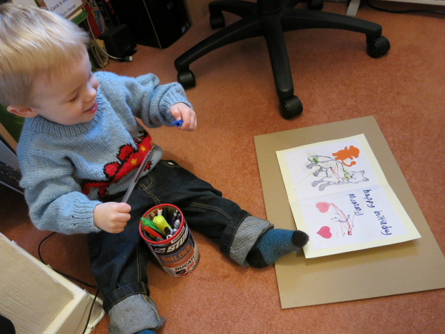 Lovely pictures, Grandma that jumper is the business. I popped in when work in progress and can confirm that Daniel did indeed use all the pens, and did all the card without help from a Grandad, except to ask how to spell mummy x