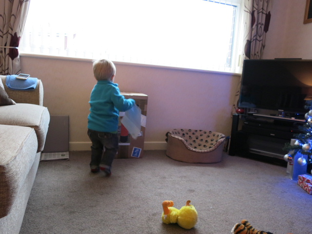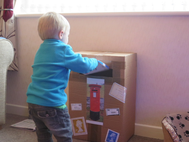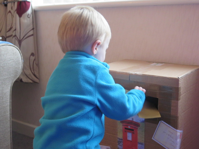 Yesterday Pat and I had Daniel and Emma whilst Sarah got on with some Christmas shopping – the home-made ‘postbox’ was a great success as you can see in the pictures …