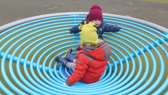 That aside it was a decent walk, the children enjoyed it and I was able to demonstrate my long since practiced skill of skimming stones which seemed to make up for the oddities that we had caught in their nets. A further walk led us to the the play area of the park which was decent enough, but not before we came across a pile of stones that had been deposited for path repairs and naturally enough the pile of stones became a mountain that simply had to be scaled.