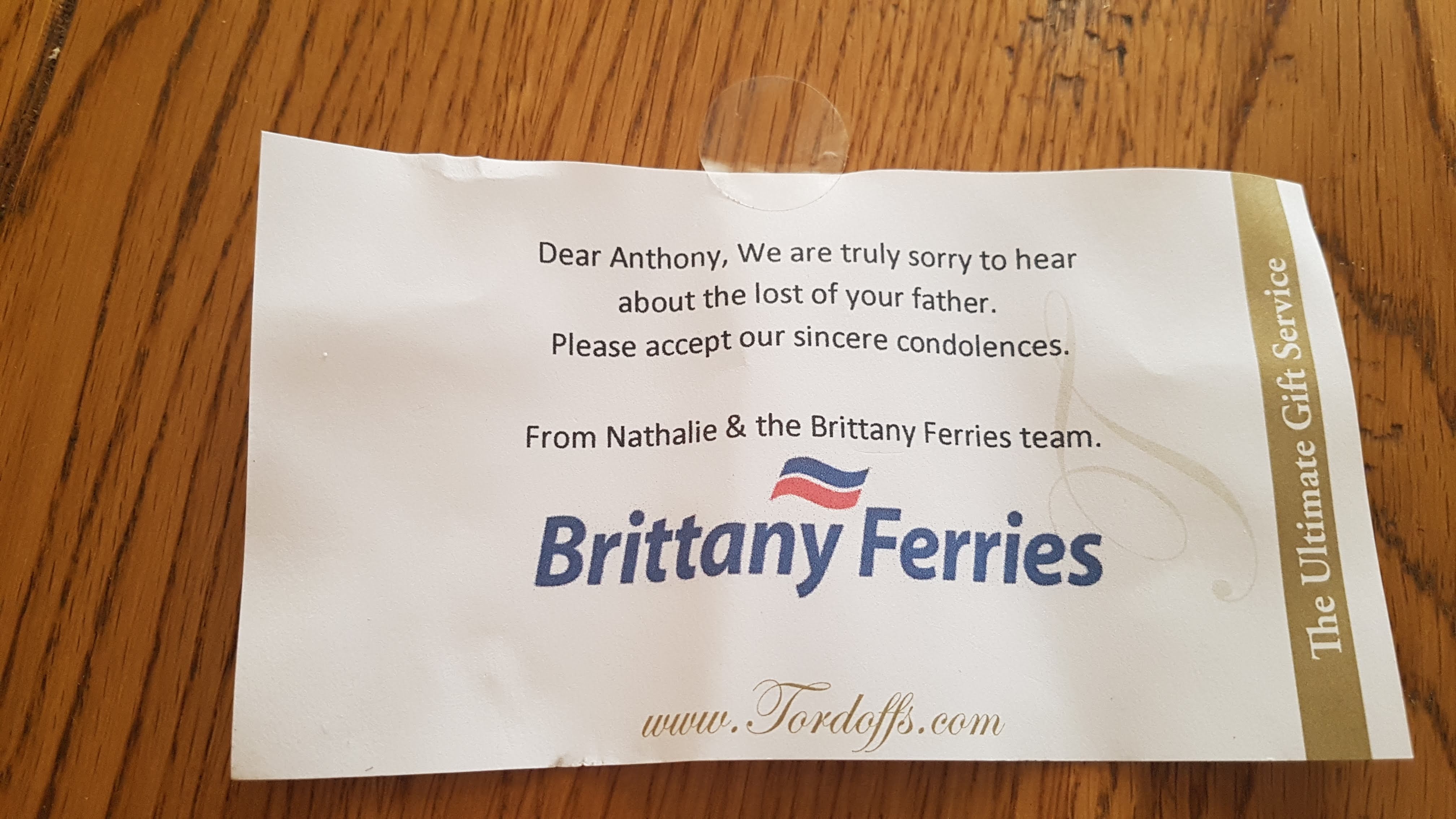 Yesterday we finalized the arrangements for my Dads funeral and so today I called back to reschedule my booking. Once again it was quite simply top quality service, my booking has been amended to later this month (slightly different due to availability, so I’ll be traveling out from Portsmouth instead of Plymouth and traveling back to Plymouth instead of Portsmouth). It was done in the most helpful and courteous manner and the normal amendment fee was waived ‘due to the circumstances’