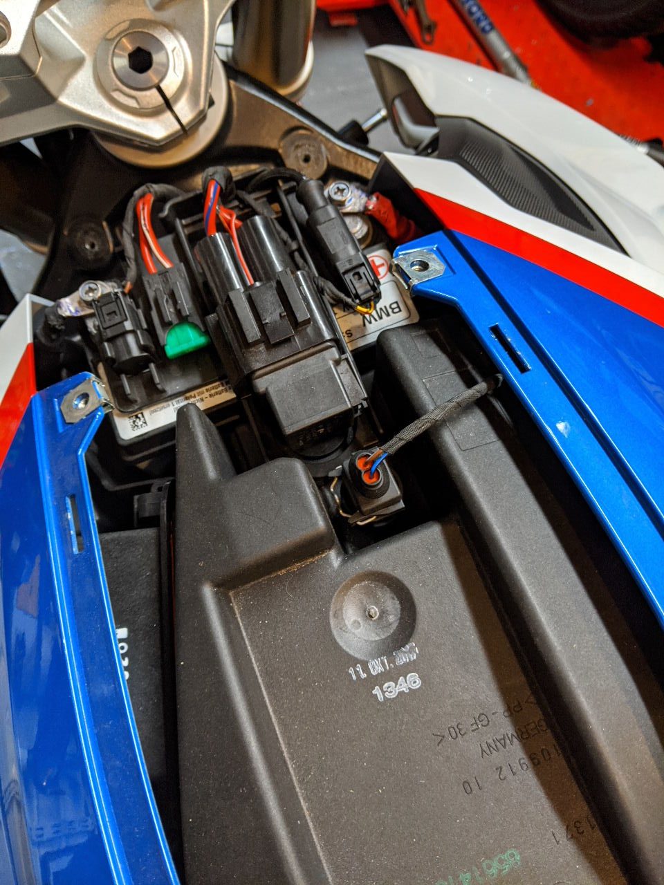 The sat nav was an easy fit, in fact the battery almost couldn’t be any closer to where the sat nav is located and making the connections wasn’t much more of a job than removing the plastic centre piece (eight smal Torx screws) and making the connections to the sat nav cable loom and then safely routing and securing the cable.