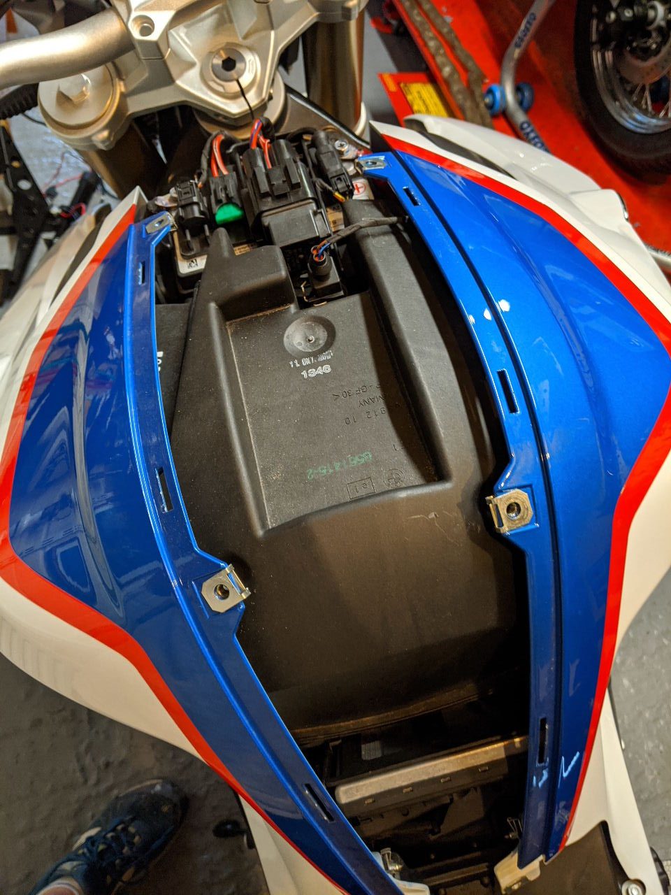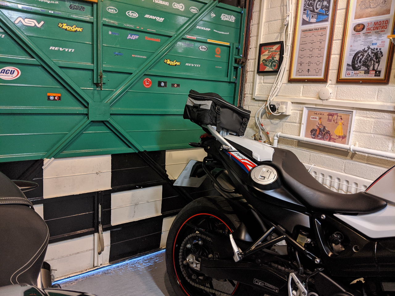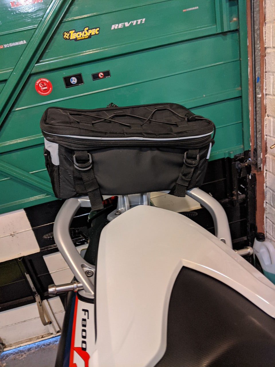 With the F800 having a plastic ‘tank’ options for fitting my (very old but still servicable) Givi Tanklock bag mean it needs to be a different type of fitting than the usual Tanklock connector – I’ve got the relevant part on order and that should be here and fitted within the next few days.