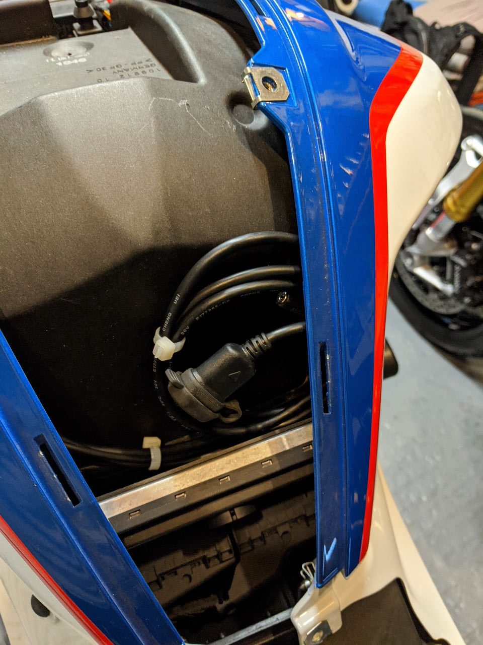 Fitting the lead for the Optimate battery charger was just as easy – and both jobs probably took less time on this bike than on my other current and past bikes.