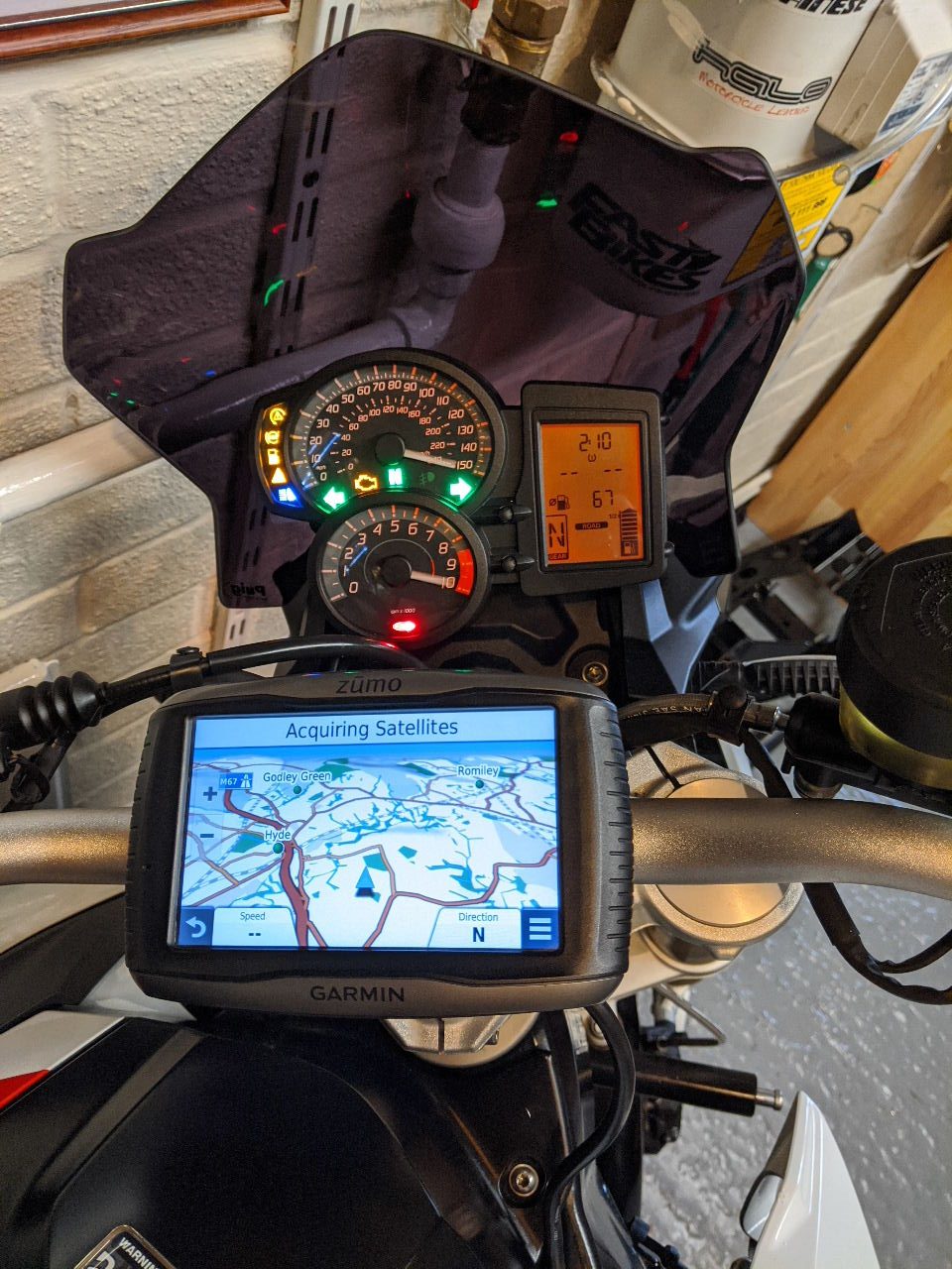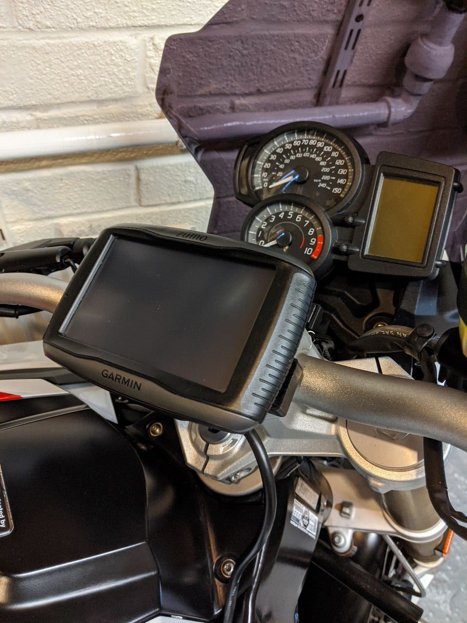 There were a couple of first jobs to do on the new bike, namely fitting the sat nav and figuring a safe way to secure a small cargo bag.