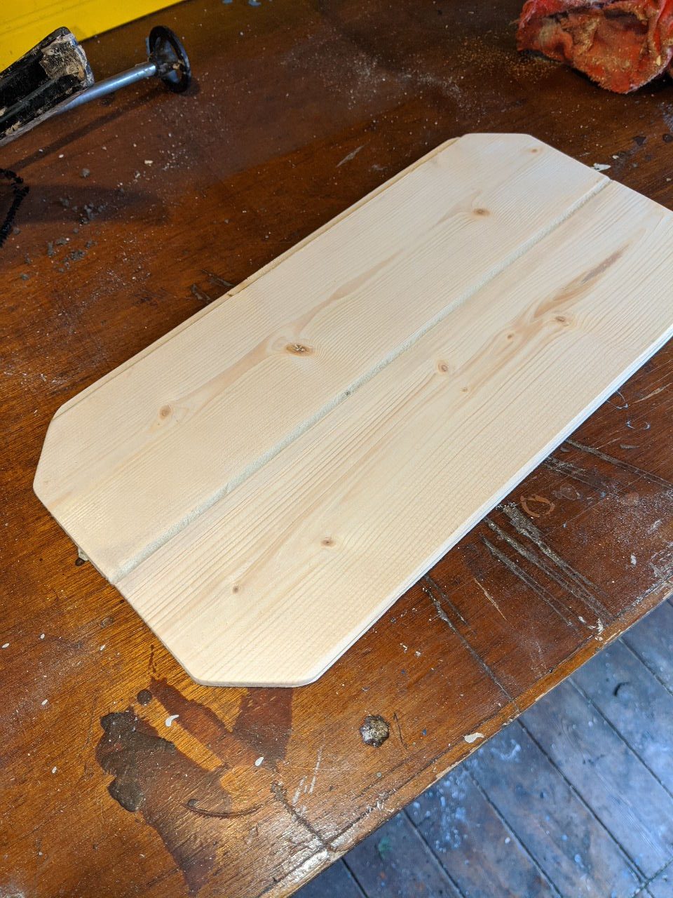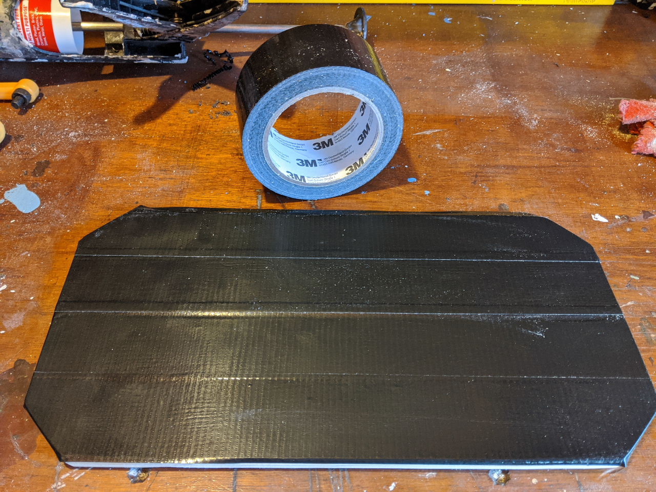 A couple of small pieces of lightweight tongue and grove wood, cut, pushed together with the corners rounded off before being covered in blac 3M tape and it was pretty much job done.