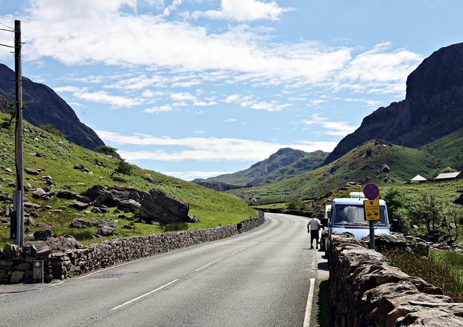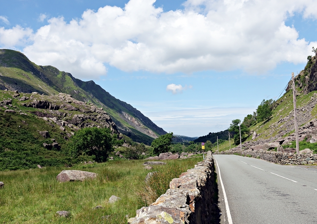 When I had finished at Penmon Point I took the road back through Beaumaris then onward and over the Brittania Bridge and onto the excellent Llanberis Pass in Snowdonia. The weather was pretty much ideal for biking and although the Pass is only about five miles long the surprising lack of traffic made it extra enjoyable.